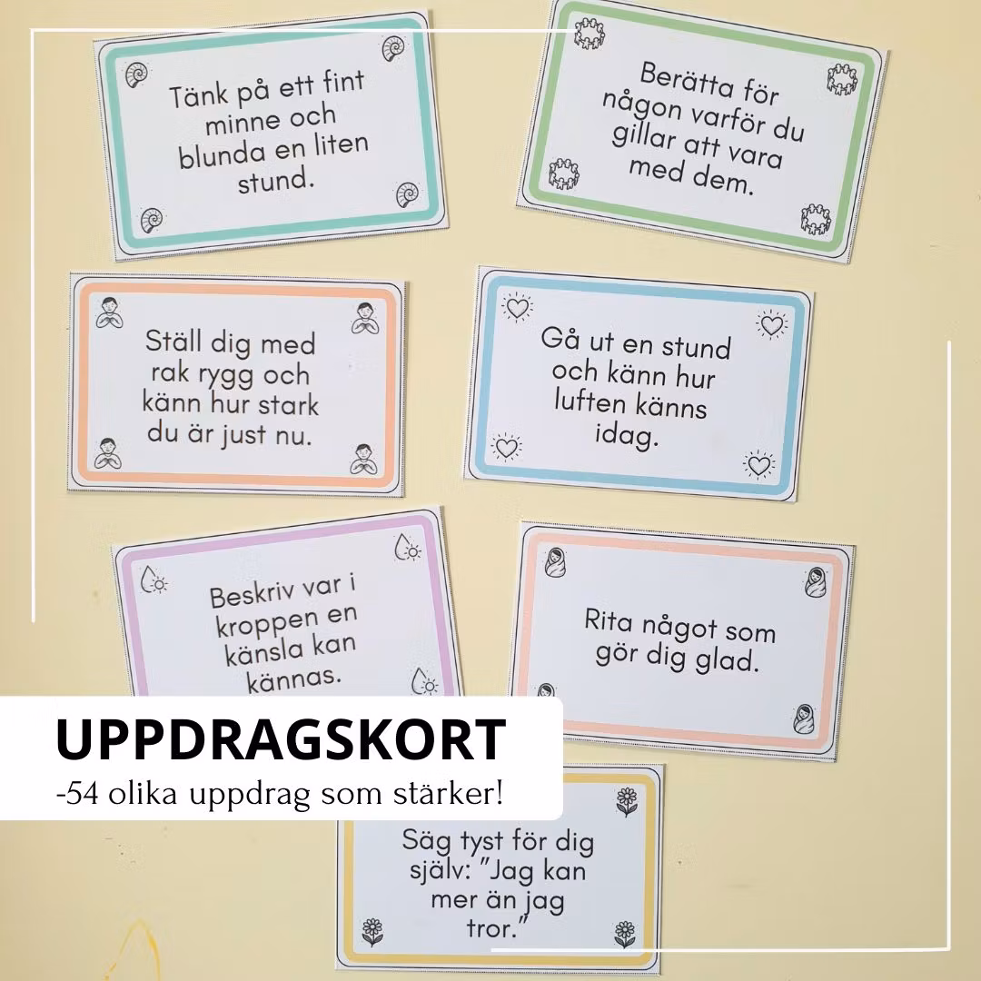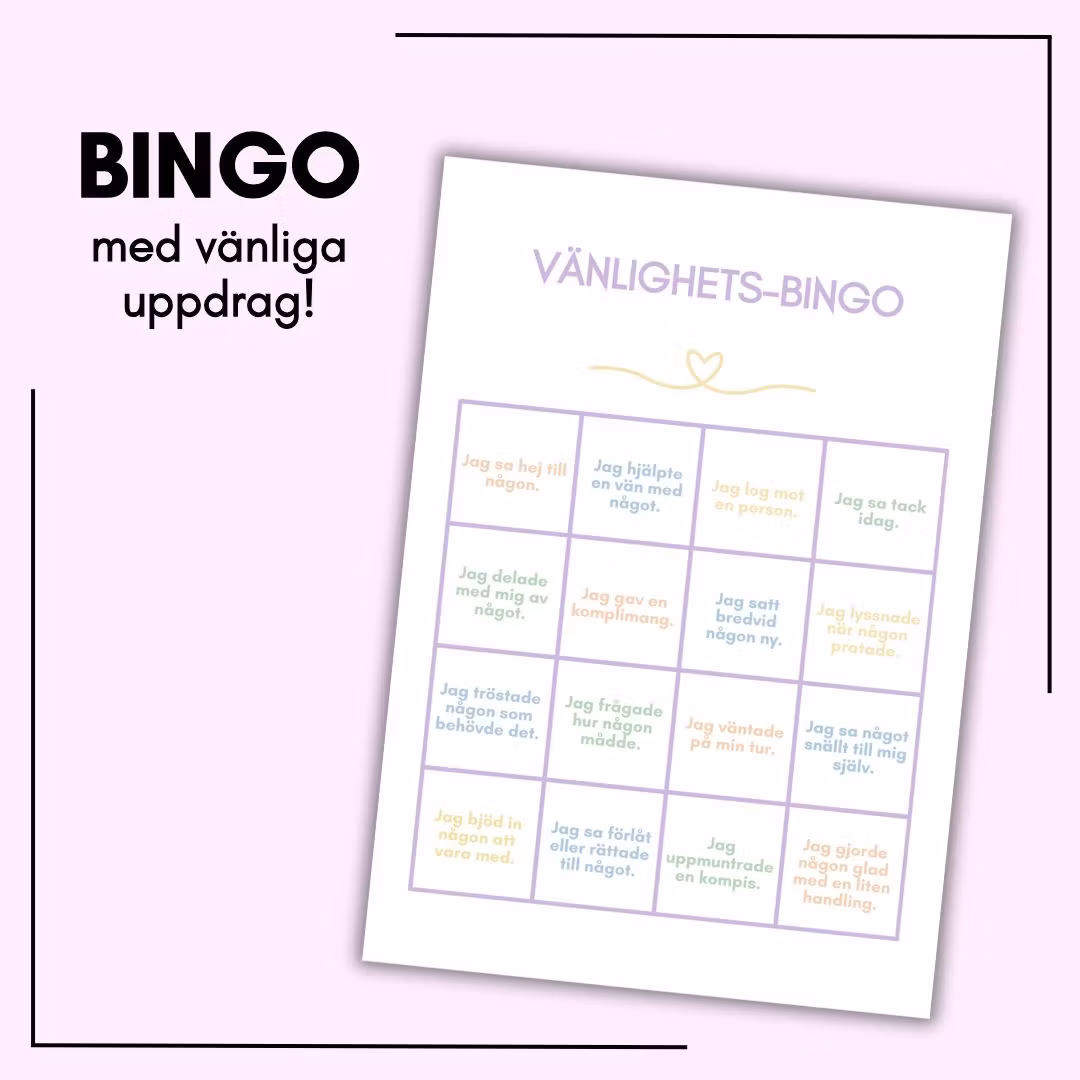 Här får du ett varierat material med papperskedjor, uppdragskort, känslosnurra, vänlighetsbingo och ett spel. Tanken är att göra det enklare och mer lustfyllt att prata om känslor, behov, styrkor och relationer med barn. Materialet passar lika bra hemma som i förskolan, skolan eller fritids.
