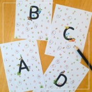 Lär bokstäver: En loppa att ta med ut i naturen - frågorna är i stil med denna: "kan du hitta något som börjar på bokstaven R?"